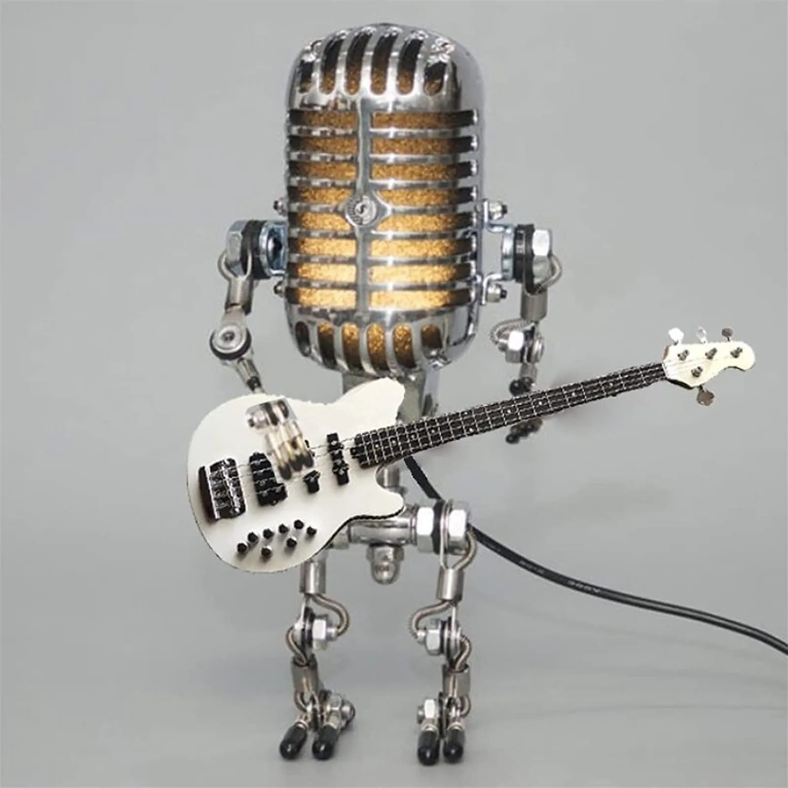 Każda lampa stanowi ręcznie wykonaną, artystyczną statuę, inspirowaną estetyką punkową i retro. Wyjątkowy kształt – mikrofonu lub gitary – natychmiast przyciąga wzrok, nadając wnętrzu oryginalny charakter. Smukła konstrukcja wykonana z precyzyjnie obrobionego metalu gwarantuje trwałość i autentyczny, surowy wygląd.