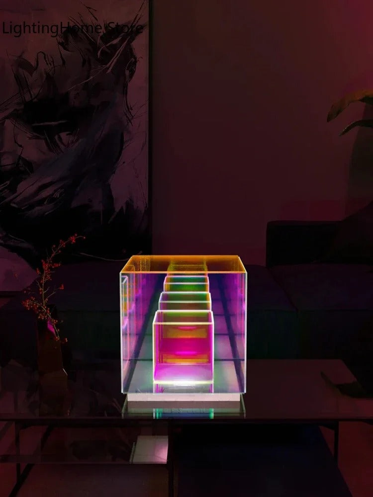Wprowadź do swojego wnętrza kolorowy i nowoczesny akcent dzięki tej lampie stołowej w oryginalnym kształcie kostki. Jej akrylowa konstrukcja idealnie pasuje do stylu nordyckiego, stanowiąc unikatową dekorację domu, a także nastrojową lampkę nocną w sypialni lub salonie.